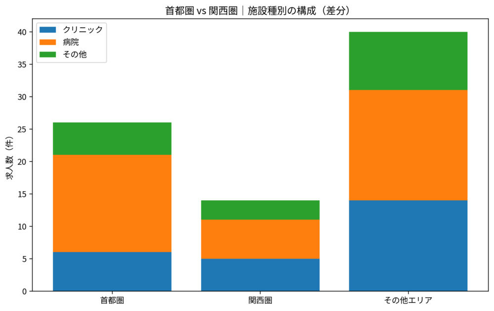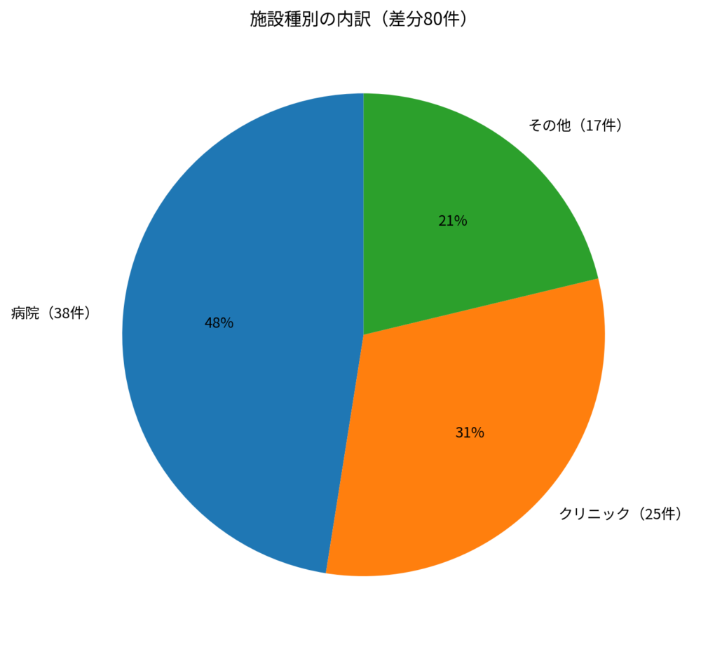 特に「差分で増えた求人」は、病院・クリニック中心に出ています。