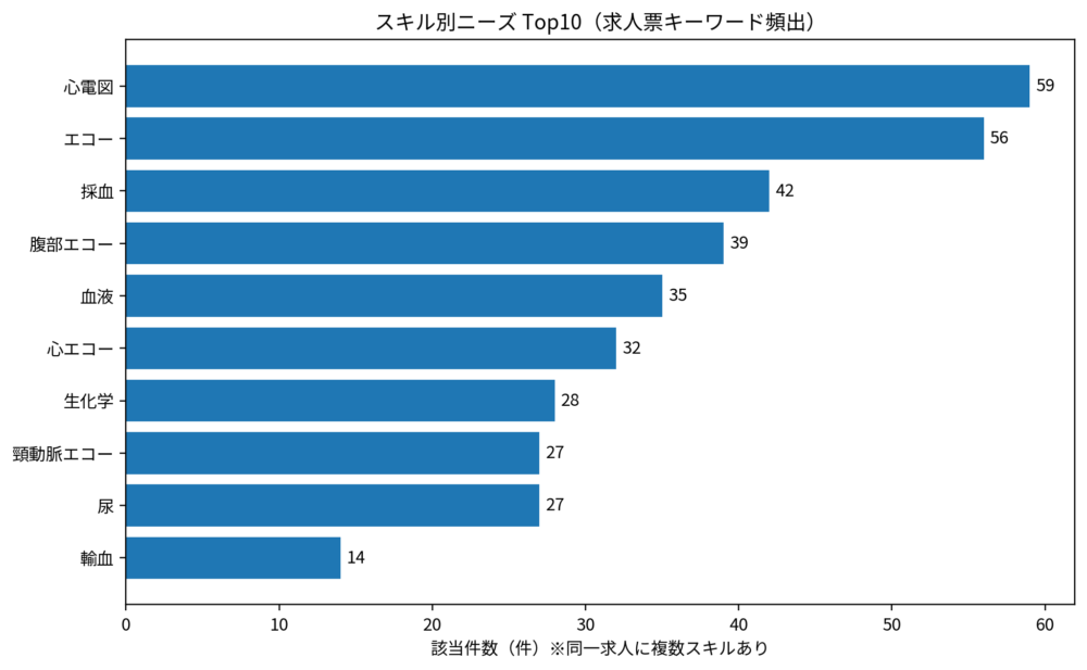 とはいえ、転職市場の共通通貨が生理(心電図・エコー)×採血であることは、今月もかなり明確です。