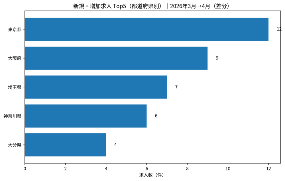 ※あくまで「差分(増えた分だけ)」なので、市場全体ではなく 直近で増えた求人の傾向 を見るデータです。