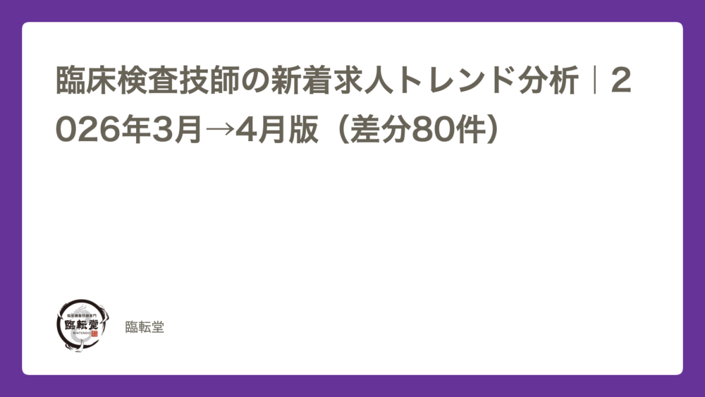 2026年3月→4月で新たに増えた臨床検査技師求人を 80件 集計しました。