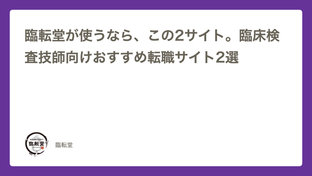 下記の記事では臨転堂の独断と偏見と口コミをもとに、臨床検査技師向け転職サイトの2025年11月時点の最新情報をまとめてます。